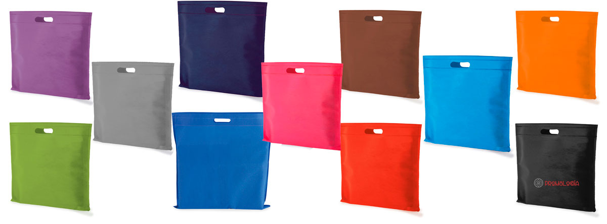 Bolsa promocional reutilizable de tejido sintético muy adecuada para contener catálogos, muestras y regalos habituales en ferias de muestras. También para comercios. Si se desean personalizadas, se imprimirán en serigrafía por una cara. Consultar precio impresión en las dos caras. Tamaño: 50 x 50 cm. Material: Non woven de 80 grs.