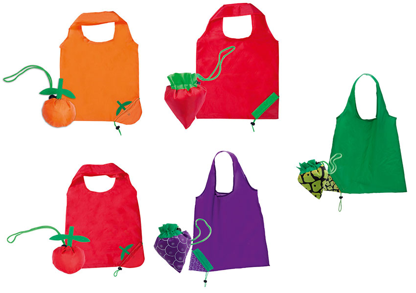 Bolsa publicitaria multiuso, fabricada con poliéster 190T. Al recogerse adquiere la forma, a elegir, de una de las siguientes frutas: fresa, manzana, naranja, kiwi, uva, piña o tomate. Idónea para cualquier campaña promocional relacionada con el hogar, especialmente para empresas relacionadas con las frutas o alimentación en general. Las bolsas se entregan abiertas.