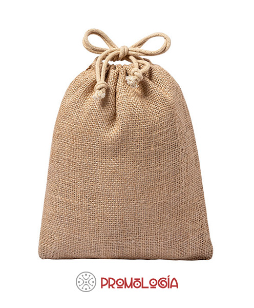 Bolsa Lesky fabricada con resistente yute con cierre de cordón y acabado cosido. 16 x 20 cm. 30 grs.