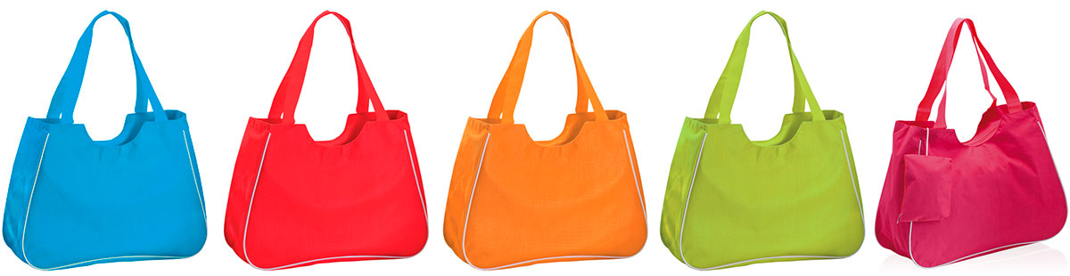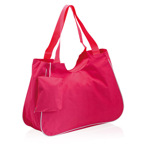Bolsa de asas tamaño medio fabricada con poliéster 600D. Una bolsa juvenil, disponible en 5 alegres colores. Incluye neceser del mismo color. Cierre con cremallera.