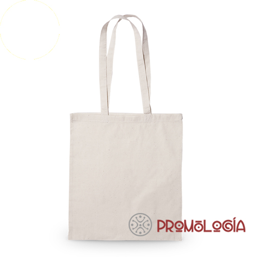 Bolsa en resistente material 100% algodón de 180g/m2 con acabado en color natural. Con asas largas de 70cm y acabado cosido. Resistencia hasta 9kg de peso.