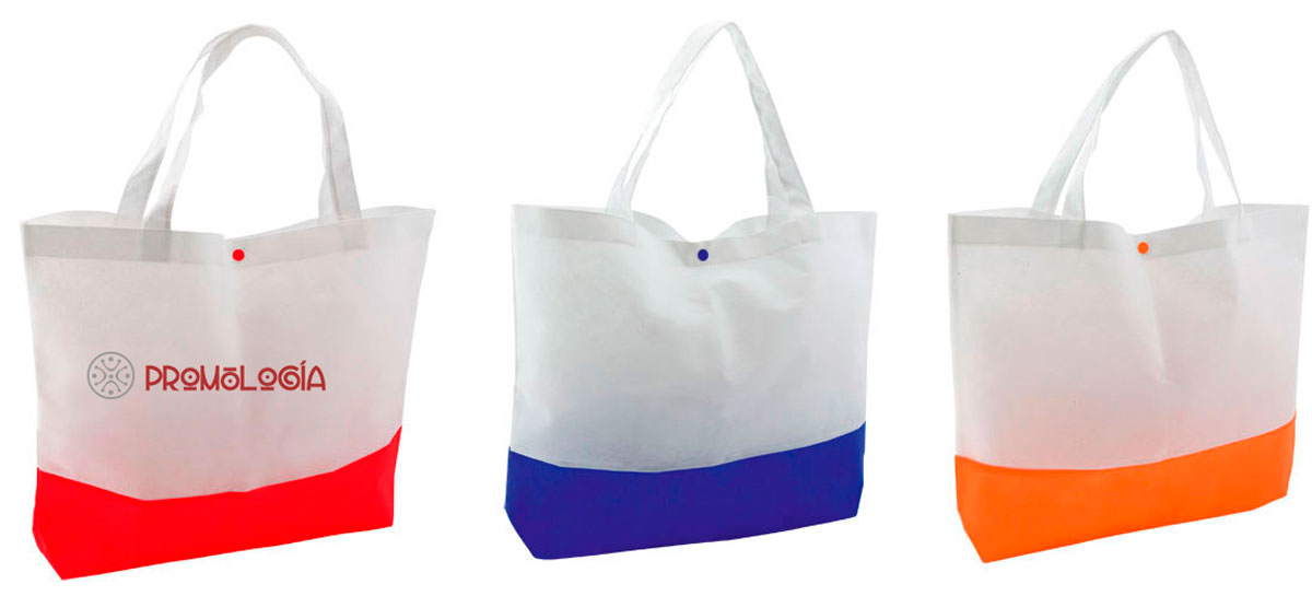 Bolsa fabricada con tejido non-woven. Bicolor, con broche de cierre a juego con la bolsa, tres modelos a elegir. La bolsa Bag-bi es la indicada si su target está relacionado con el hogar y la compra o el tiempo libre y la playa.