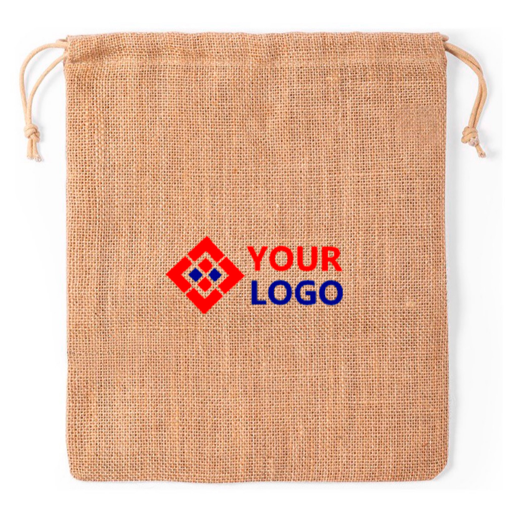 Bolsa Vagan fabricada con resistente yute con cierre de cordón y acabado cosido. 25 x 30 cm. 60 grs.