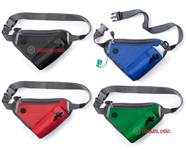 Riñonera marca mkt, con diseño triangular en suave poliéster 210D de variados colores. Diseñada para actividades deportivas y de ocio. Con bolsillo de cierre de cremallera, salida de auriculares, bolsillo ajustable para bidón y cintura con cierre de clic ajustable. -Bidón no incluido-. Medida y Peso Articulo: 27 x 18 cm | 64 gr.