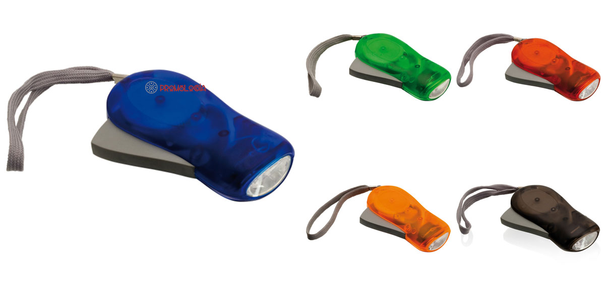 Práctica linterna publicitaria de carga manual con 3 leds. Carga su batería al accionar manualmente una palanca. Las linternas de carga manual son muy prácticas, no le volverán a hacer falta pilas ni se encontrará con la terrible sorpresa de que las pilas se han agotado en el momento más inoportuno. Disponible en 5 colores. MEDIDAS: 10,5 x 5 x 2 cm