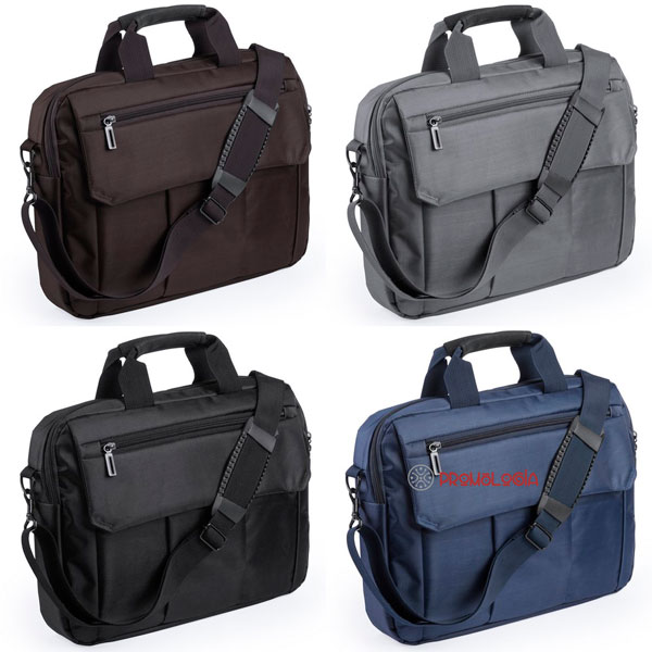 Cuatro colores oscuros (negro, marino, marrón y gris) para este maletín publicitario de nylon, con departamento acolchado para el portátil, cinta para llevar de bandolera y asas para mano. Para impresión en serigrafía sobre una amplia zona. Muy oportuno como regalo de empresa y como regalo de bienvenida a congresos, cursos,… Dimensiones: 37 x 29 x 7,5 cm. Peso: 470 gr.