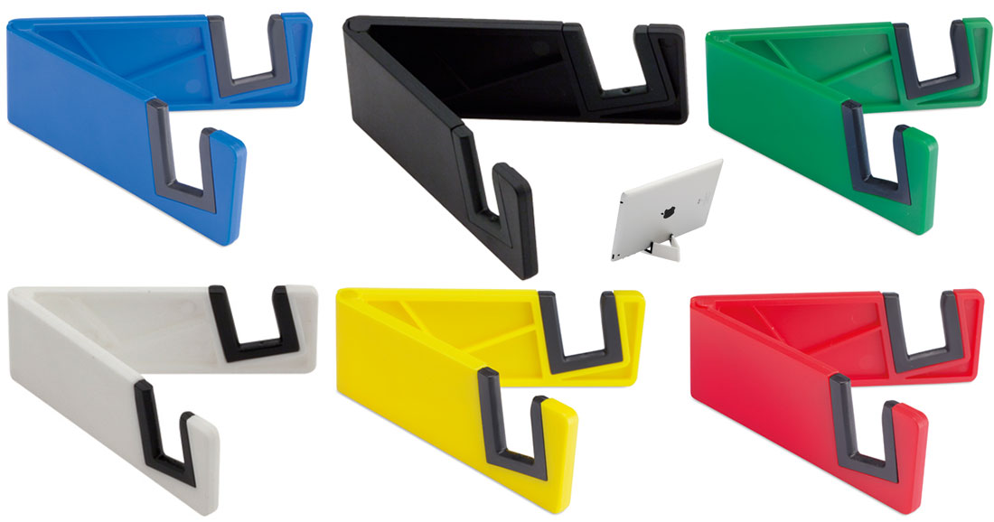 Además de mantener nuestro dispositivo móvil seguro y a la vista, podremos con este soporte para publicidad, tener las dos manos libres mientras consultamos su pantalla. Muy utilizado en promociones de tiendas relacionadas con la telefonía. Al ser plegable su costo de envío es muy económico.
