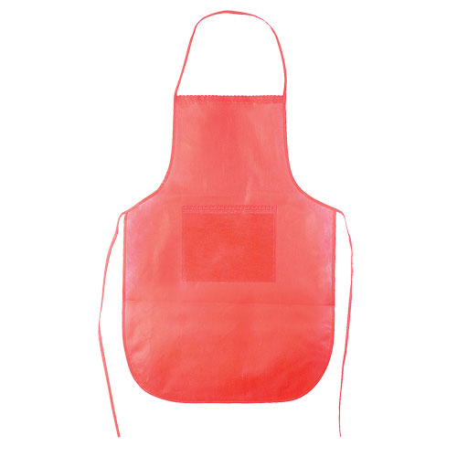 Delantal promocional de non-woven (tejido sintético no tejido) de precio muy económico y en cinco colores. Con gran bolsillo central.