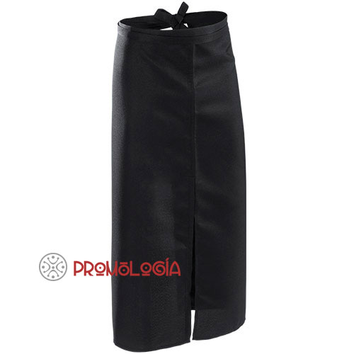 Elegante delantal fabricado 100% en poliéster. Se trata de un delantal de cintura largo de color negro muy recomendable para hostelería. Medidas: 90 x 90 cm.
