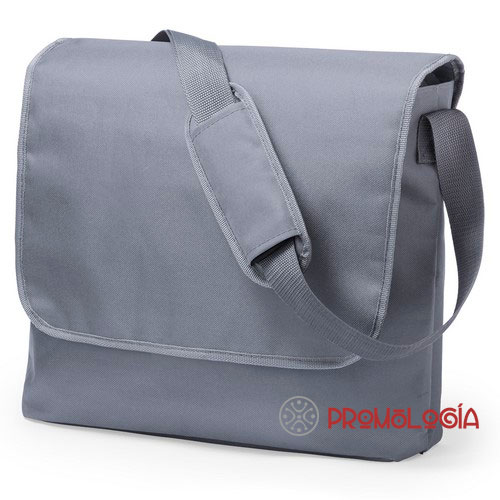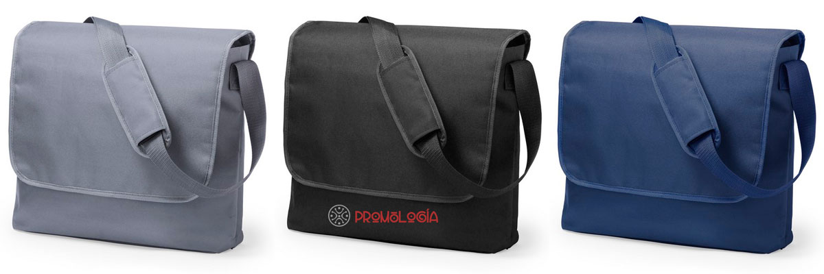 Bandolera publicitaria de poliéster 600D, disponible en tres sobrios colores: marino, negro y gris. Tamaño: 43 x 31 x 11 cm., peso 288 gr. Ideal para trabajo y estudio. Amplia superficie para marcaje en serigrafía.