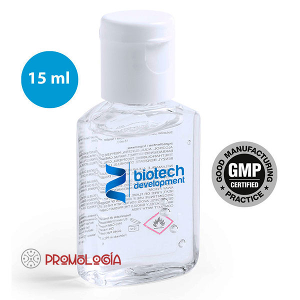 Gel manos hidro-alcohólico para la limpieza de la piel en bote de 15 ml con dosificador.