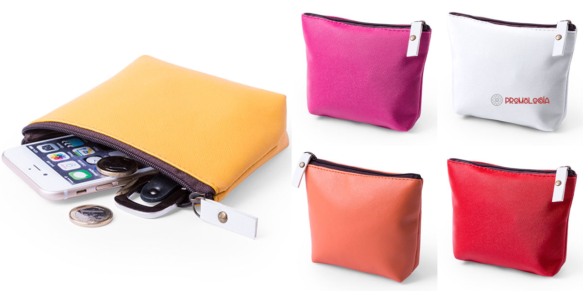 Llaves, monedas, documentación personal, móvil,… todo coge en este práctico y barato monedero porta-todo promocional. Realizado con PVC en 5 colores, la personalización se hace en serigrafía sobre una amplia superficie.