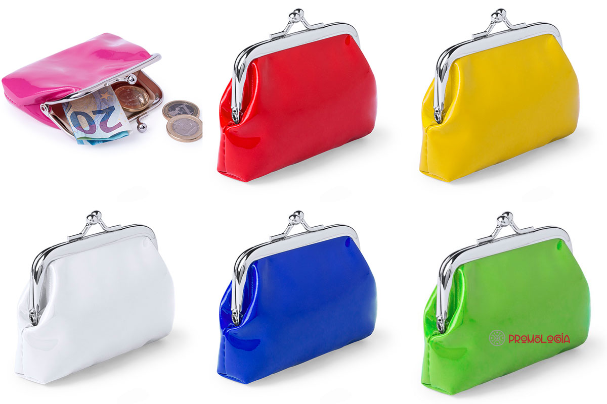 Monedero de señora publicitario fabricado PVC en 6 colores: verde claro, amarillo, rojo, azul, blanco y fucsia. Modelo clásico combinando con materiales y colores modernos. La personalización se realiza en serigrafía, teniendo el producto una buena superficie para su logotipo y mensaje promocional.