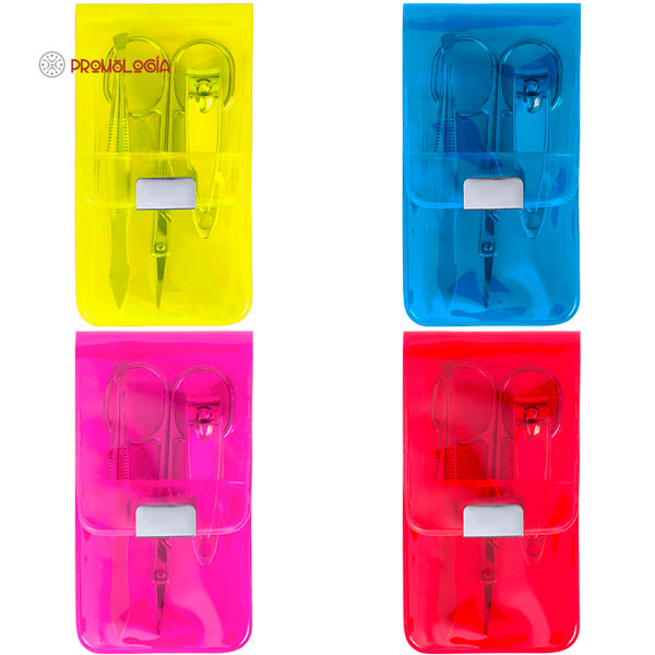 Set de manicura con 3 accesorios. Funda fabricada en PVC de 4 colores. Práctico estuche para tener siempre organizadas las herramientas de manicura tanto en viaje como en casa. MEDIDAS: 5,7 x 10,1 x 1,4 cm.