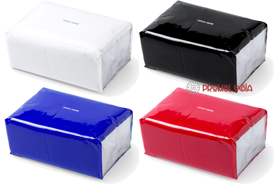 Paquete de pañuelos de papel promocionales que contiene 100 pañuelos de papel de triple capa. Un artículo de uso generalizado y de muy buena aceptación. Muy recomendado para hacer una gran promoción a un bajo coste. El envoltorio de los pañuelos está disponible en cuatro colores diferentes. MEDIDAS: 13 x 6 x 9 cm