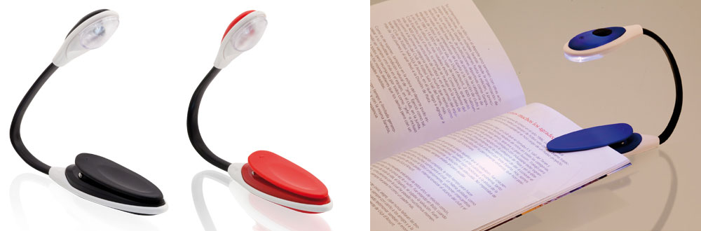 Lámpara promocional de 1 led, con pilas botón incluidas. Tamaño: 3 x 25 x 2 cm. Muy útil para lectura con poca luz. Aconsejada para editoriales y otras empresas relacionadas con los libros, tanto electrónicos como tradicionales.