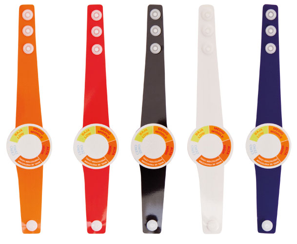 Económico medidor de rayos UV, que se lleva en la muñeca como un reloj y nos indicará en todo momento la intensidad de las radiaciones ultra-violetas del sol. Con esta información podremos tomar las medidas adecuadas para protegernos: aumentar la cantidad o el factor de la crema protectora, abrigar nuestra piel o ponernos a la sombra. Muy adecuado para promoción de empresas vinculadas al mundo de la salud, como farmacias, laboratorios, etc…. Medidas: 20,2 x 4 cm