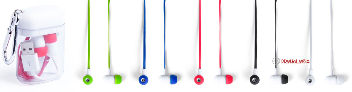 Auriculares promocionales sin cables al dispositivo, con conexión Bluetooth y recargables por USB. Presentados en un precioso estuche que aumenta las posibilidades de personalización. El estuche, de plástico, incorpora un mosquetón para colgar del cinturón, mochila,… Fabricados en 5 modernos colores a elegir en múltiplos de 10 unidades.