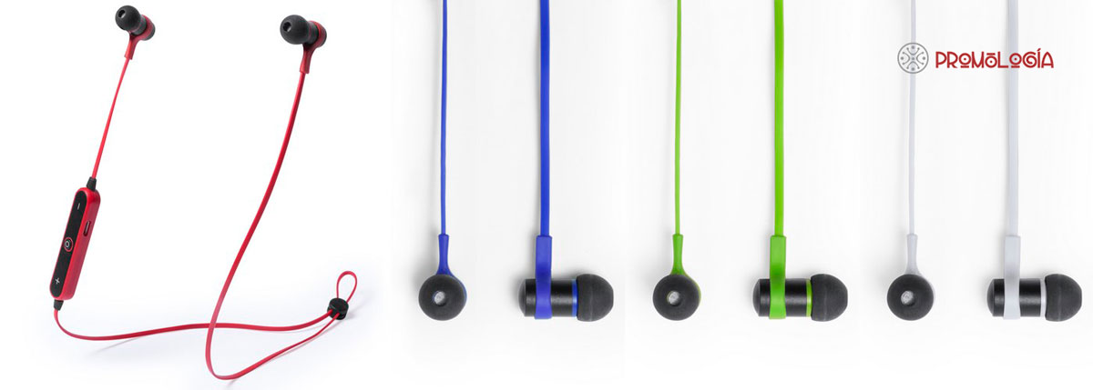 Auriculares para publicidad Bluetooth, recargables por USB, con mando para control de volumen y llamadas. Fabricados en cuatro colores.