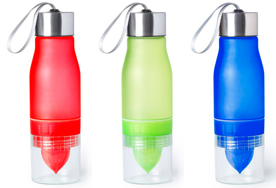 Original bidón de 700ml de capacidad en material tritán de alta resistencia al calor y libre de BPA en variada gama de vivos colores. Incluye compartimento en base con exprimidor de cítricos para dar sabor al agua. Con dosificador, tapón a rosca y cinta de transporte. Presentado en caja individual. Medida y Peso Articulo: 25 cm | Ø 7.3 | 188 gr.
