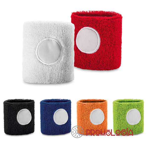 Muñequera deportiva promocional elástica. Fabricada en poliéster. Acabado tipo toalla con área circular indicada para el marcaje. Esta muñequera es muy útil para proporcionar calor y compresión a la zona de la muñeca así como para secarse el sudor. Medidas del producto: 75 x 78 mm