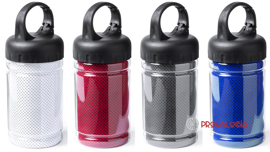 Toalla de 90x30cm en material refrigerante SoftCool Extreme con protección UV50. De 160g/m2 y presentada en estuche individual transparente con asa mosquetón de transporte integrada en tapa. Impresión en el envase en serigrafía. Medida y Peso Articulo: 30 x 90 cm | 98 gr.