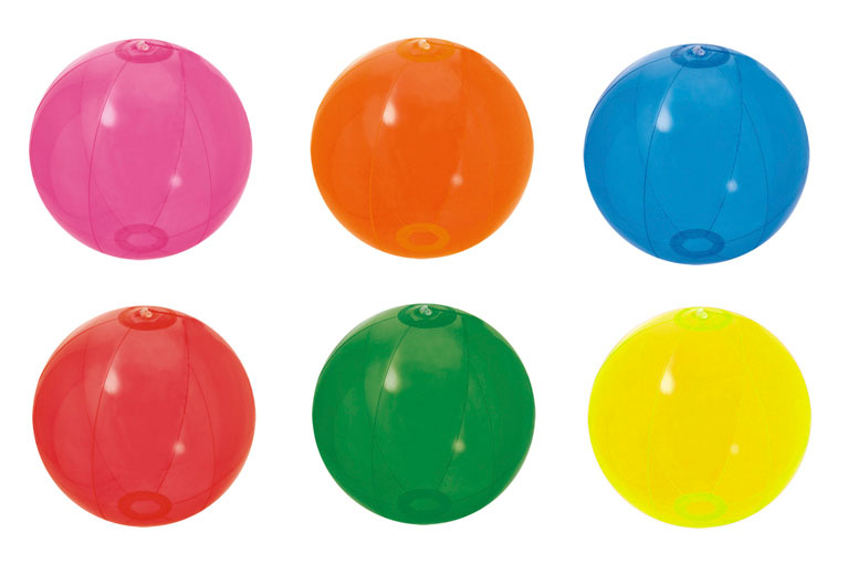 Balón de playa publicitario de PVC. En 7 colores translúcidos. Además de la playa son muy utilizados en piscinas y para juegos al aire libre. Medidas desinflado 37 cm. e inflado 30 cm
