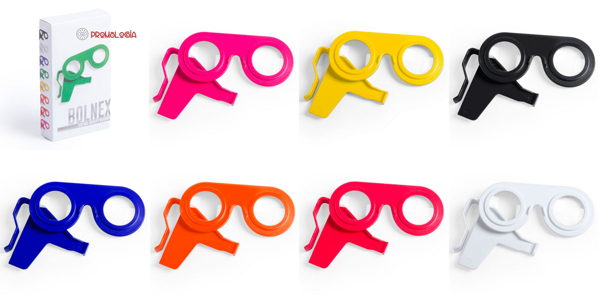 Sencillas y baratas gafas de realidad virtual, muy deseadas por el público más joven. Su precio las hace indicadas para promociones masivas. Fabricadas en 9 colores diferentes para que pueda seleccionar el que mejor encaja con su marca. En la imagen 3D podrá ver una ya montada.