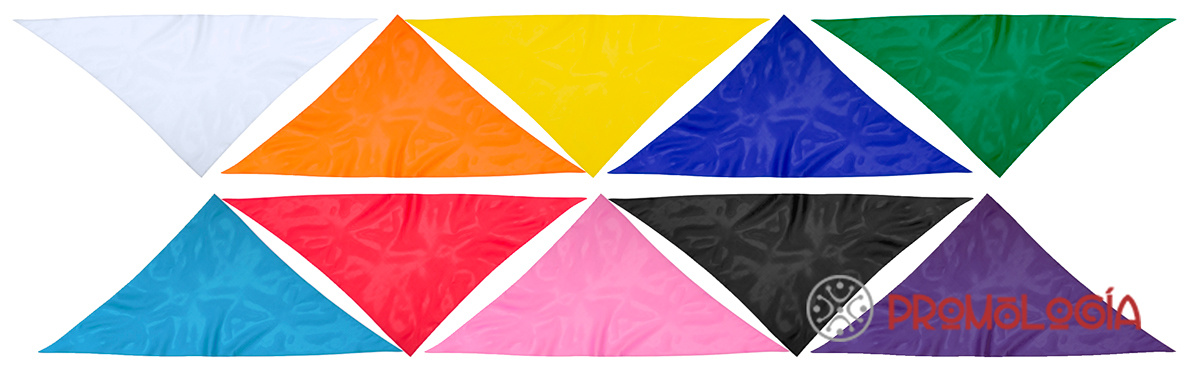 La pañoleta San Fermín, da uniformidad y colorido. Se trata de una pañoleta tamaño extra de diseño tirangular. Con cuerpo en suave poliéster de vivos y variados colores. Pespuntes de refuerzo en los laterales. Color blanco especialmente diseñado para marcaje en sublimación. Muy utilizadas por peñas, comisiones de fiestas y ayuntamientos para distinguirse y dar realce a un evento o festejo. Podemos imprimir su marca/logo en ella de forma que todo el mundo tendrá visible su mensaje.