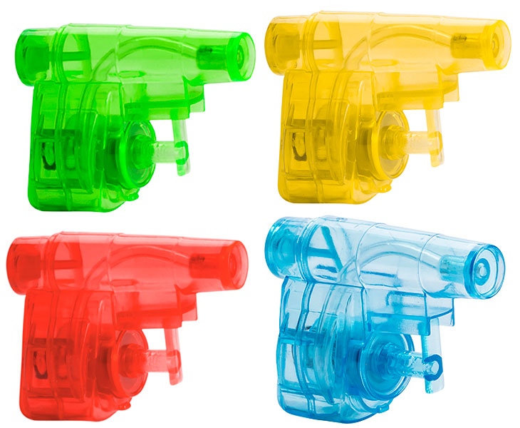 Pistola de agua promocional fabricada en 4 diferentes colores translúcidos que permiten ver el mecanismo. Un juguete que divertirá y refrescará en verano a los niños en la piscina, la playa, el camping,… Impresión en tampografía.