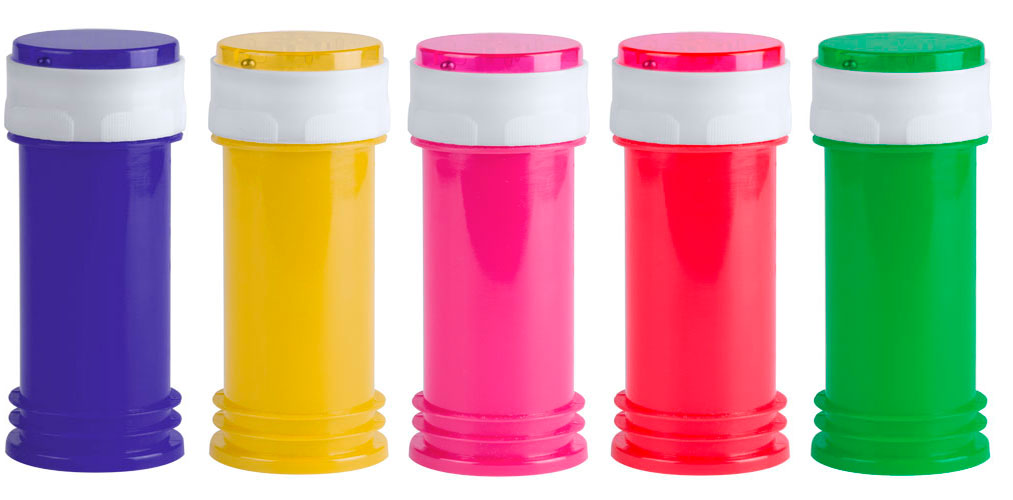 Otro juguete tradicional que permanece tan vivo como el primer día. Las pompas de jabón fascinan a los niños de hoy lo mismo que a los niños de hace 100 años. Fabricado en una gama de 5 colores para hacer aún más divertida su promoción. Impresión en tampografía. Líquido para hacer pompas no incluido.