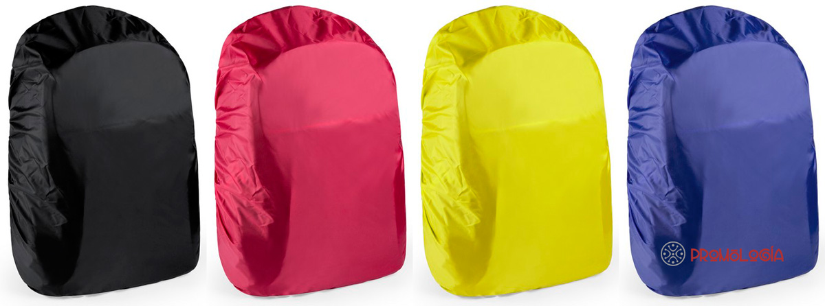 Funda impermeable para mochila de resistente poliéster 190T en variada gama de vivos colores. Con elástico ajustable. Peso Articulo: 40 gr.