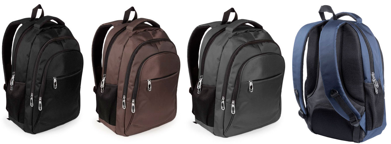 Cómoda mochila para publicidad de excelente relación calidad/precio, marca mkt, fabricada con nylon 600D. Disponible en 4 colores: marrón, negro, azul marino y gris. La parte trasera y las correas están acolchadas. Tiene también un espacio acolchado para portátil y múltiples bolsillos y compartimentos. Para un target de edades comprendidas entre los 16 y los 40 años, esta mochila polivalente es adecuada tanto para el ocio como para el trabajo.