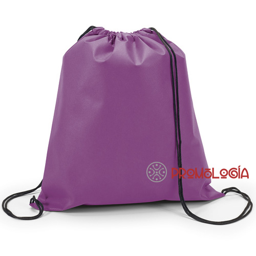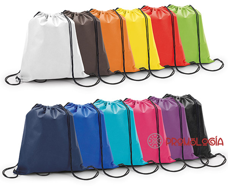 Mochila petate publicitaria de Non-woven: 80 g/m², en un gran surtido de colores. Marca mkt. Amplio espacio para marcaje en serigrafía. Medidas: 37 x 41  cm.