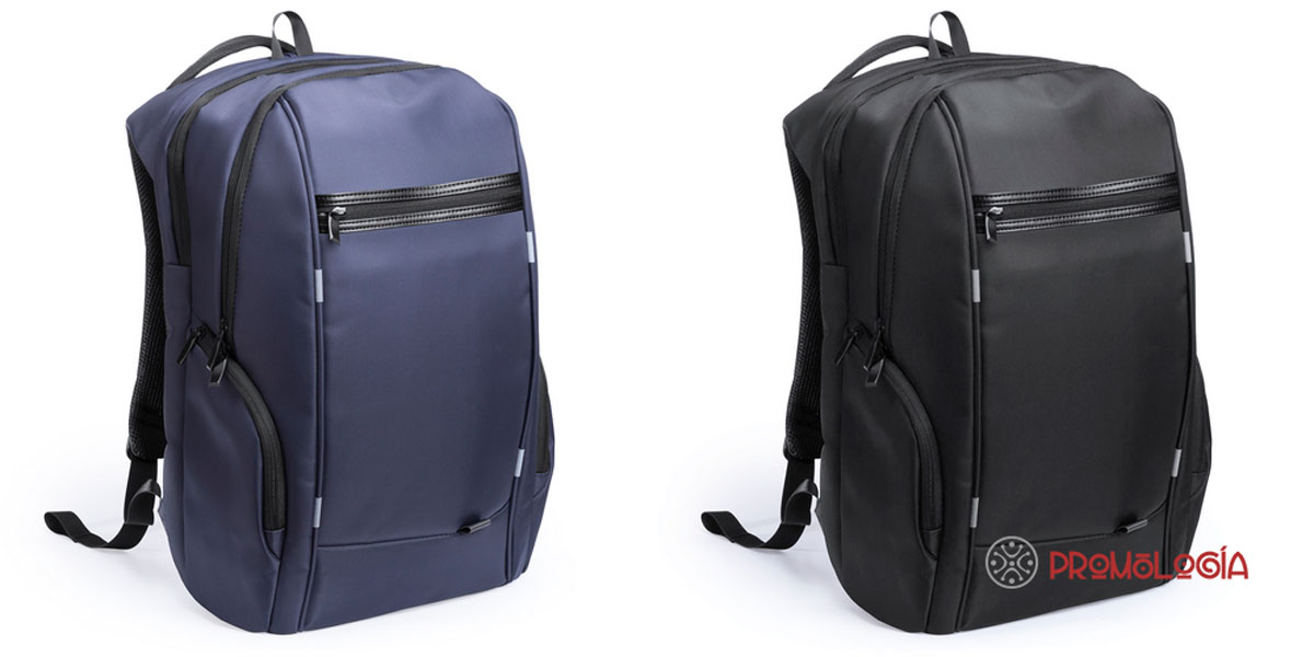 Mochila promocional de nylon, con conexión USB y bolsillo acolchado para portátil. Reverso y cintas acolchadas para un mayor confort. La impresión se realiza en serigrafía. Tamaño 30 x 45 x 20 cm. Peso 850 gr.